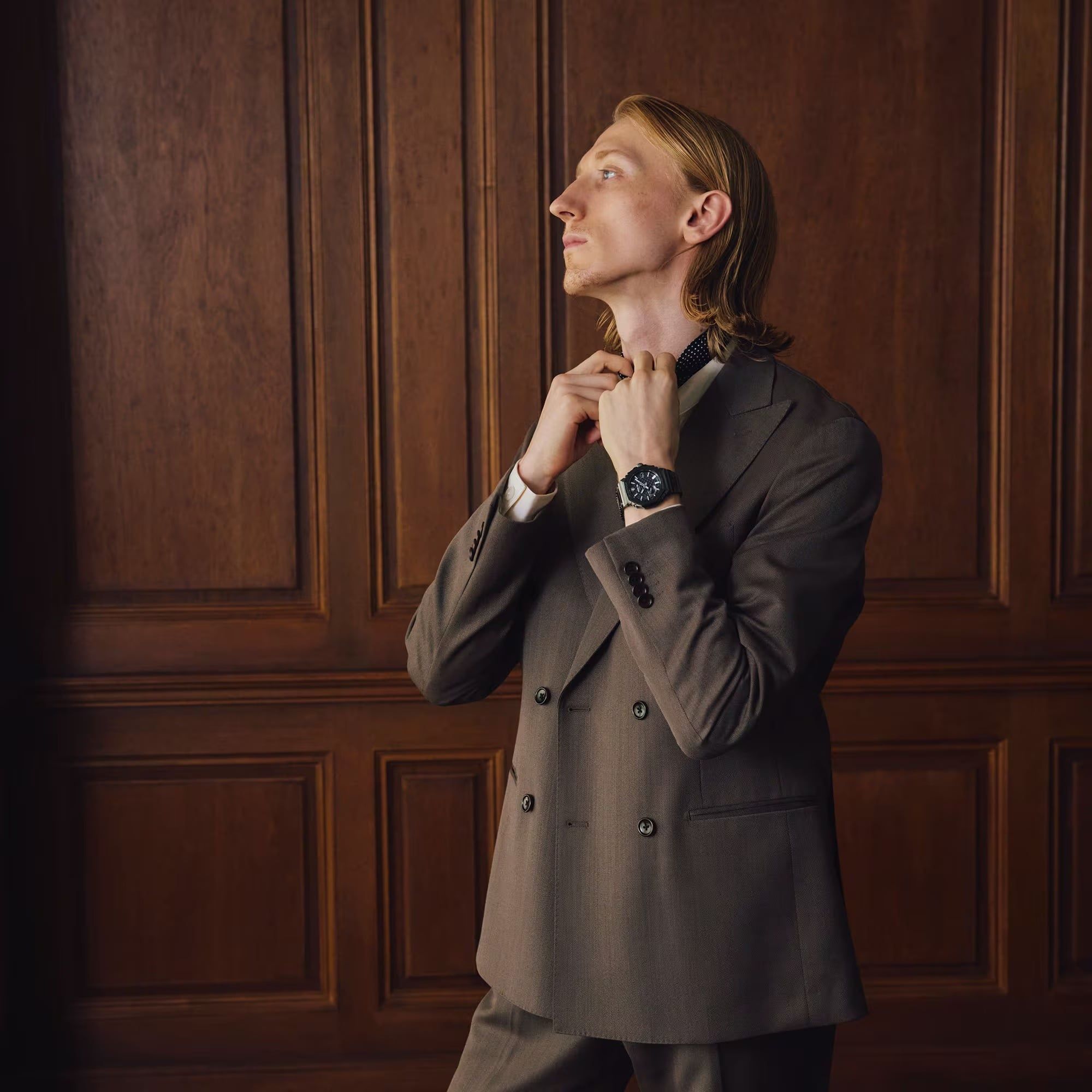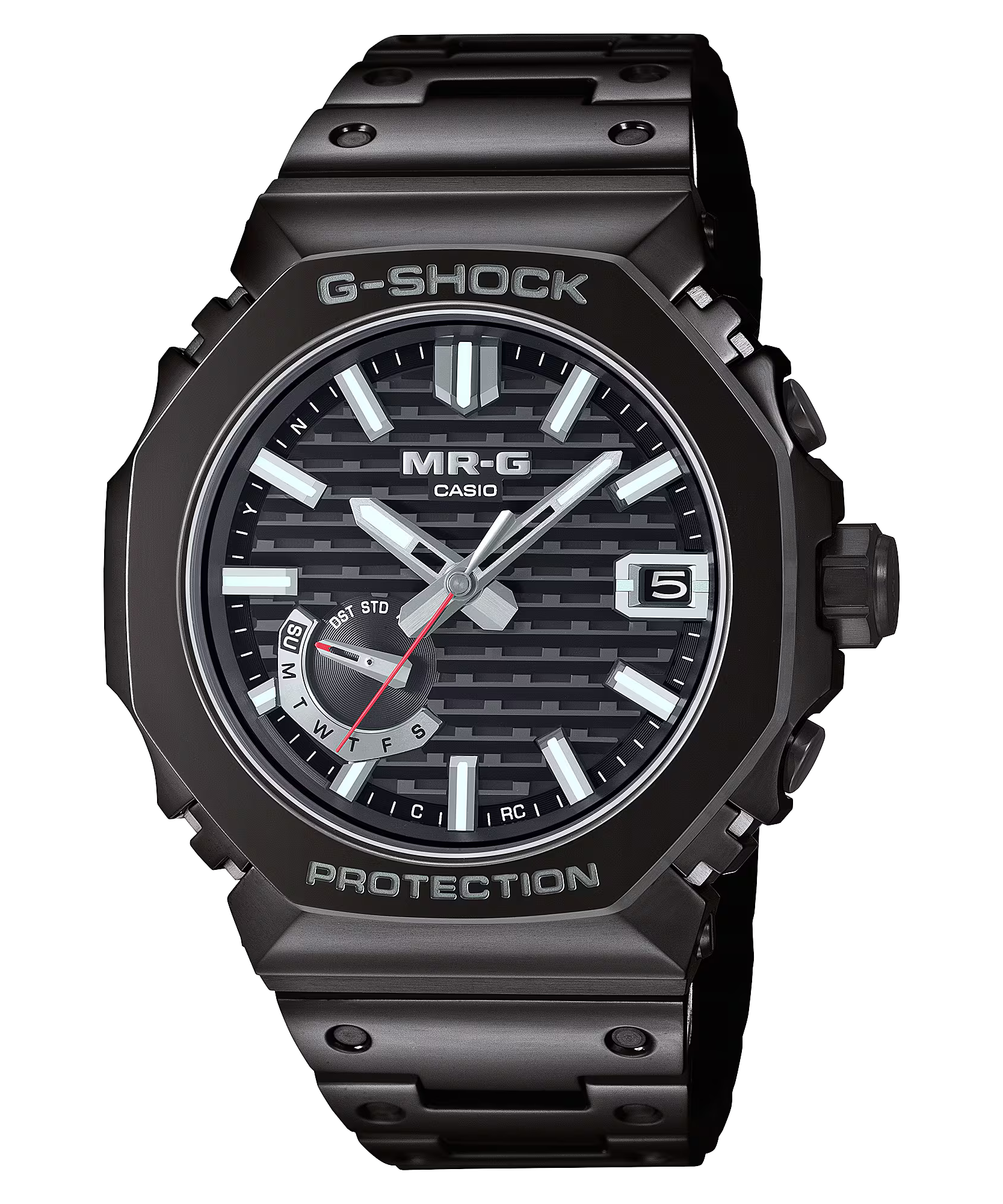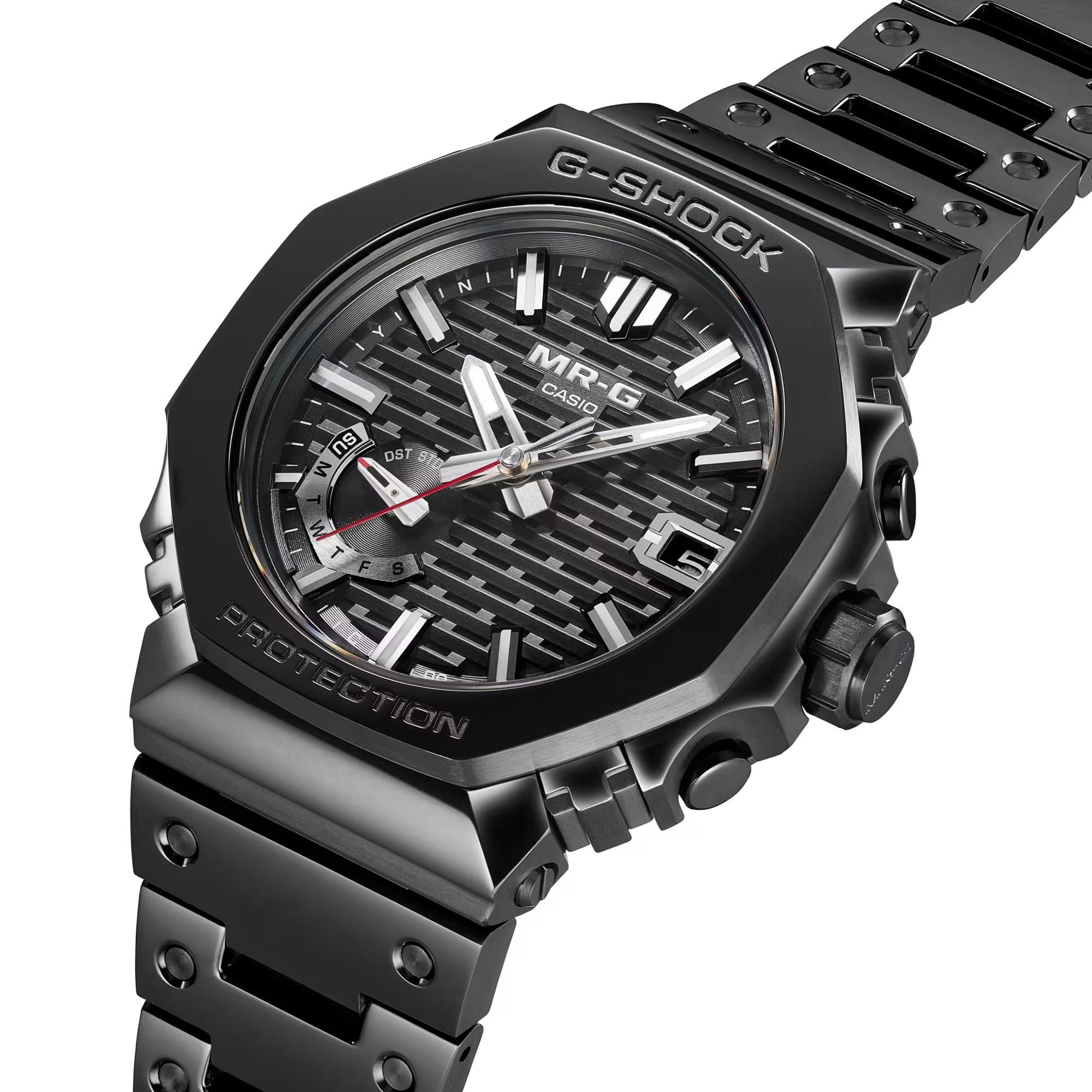 Mặt đồng hồ lấy cảm hứng từ nghệ thuật gỗ khóa liên động truyền thống Nhật Bản được gọi là kigumi, như gờ của chiếc MRG-B2100 này bao gồm vô số các bộ phận nhỏ. Nghệ thuật truyền thống này được thể hiện qua cấu trúc hai phần được lắp ráp phức tạp của các vạch chỉ giờ cũng như độ sâu và kích thước của mặt số dạng lưới. Các lỗ nhỏ trên mặt đồng hồ — sản phẩm thủ công đòi hỏi độ chính xác cao nhất trong công nghệ xử lý — cho phép đủ ánh sáng để tạo năng lượng mặt trời để giúp bạn duy trì tốc độ.