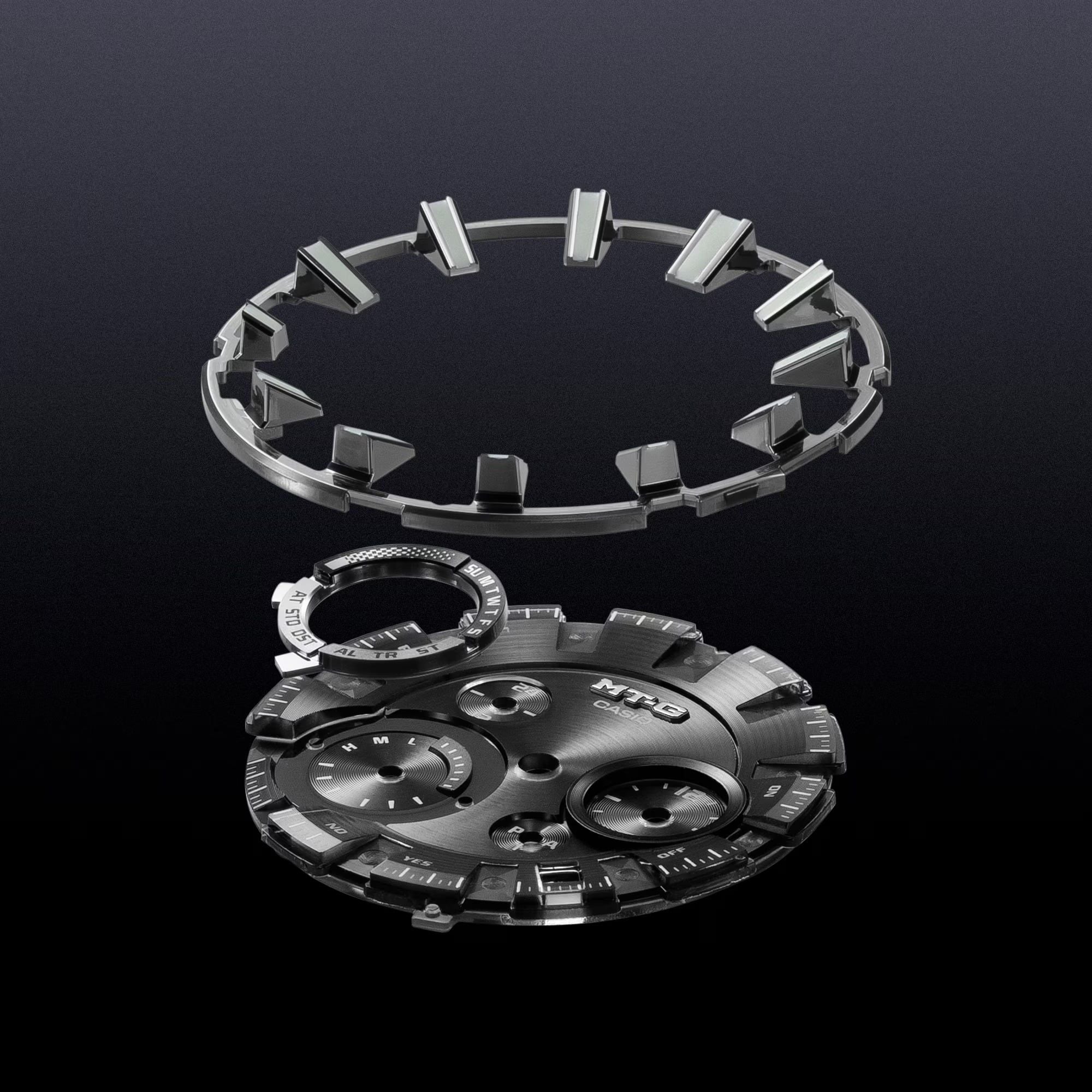 Khám phá hình thức cải tiến và vẻ đẹp kết cấu của đồng hồ MT-G, kết hợp vật liệu kim loại với nhựa được sử dụng trong các mẫu G-SHOCK đầu tiên.
